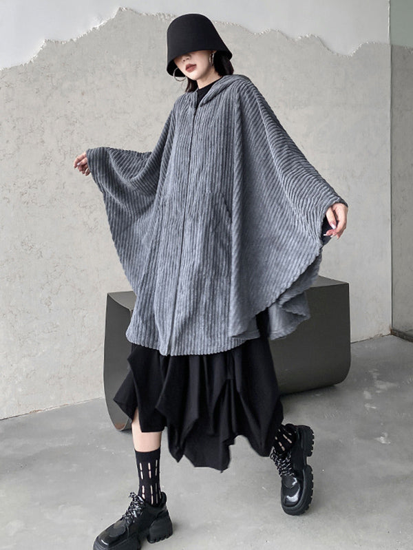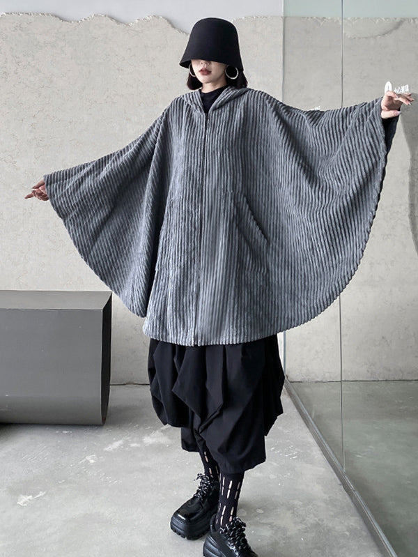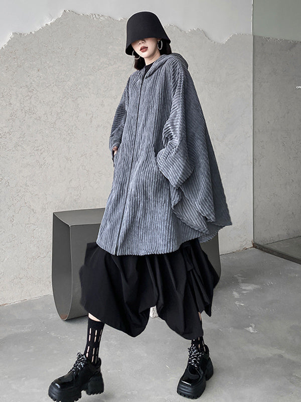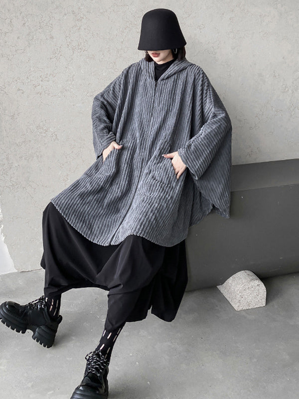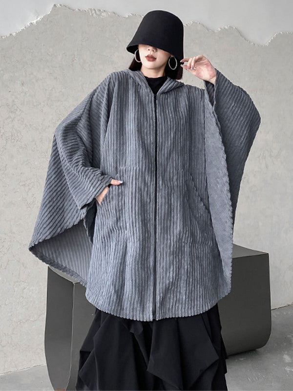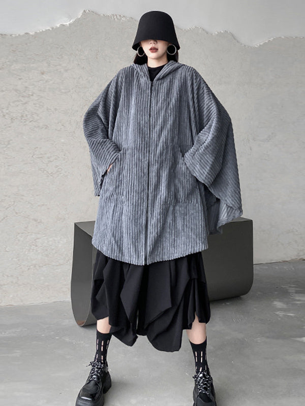 Casual Batwing Sleeves Loose Zipper Jackets Outerwear