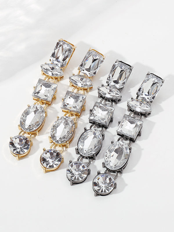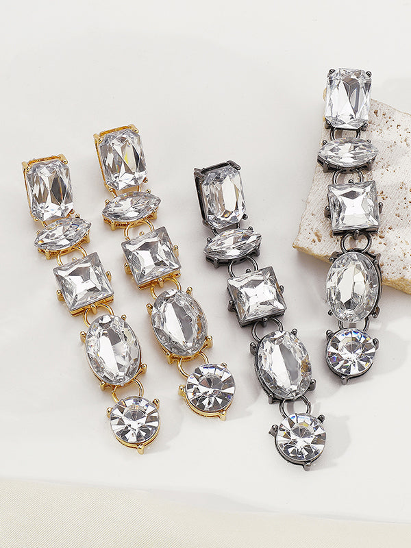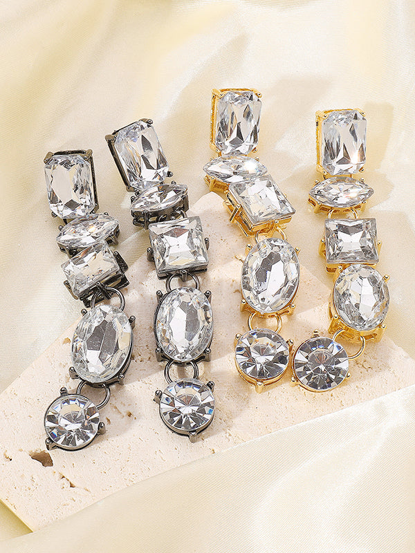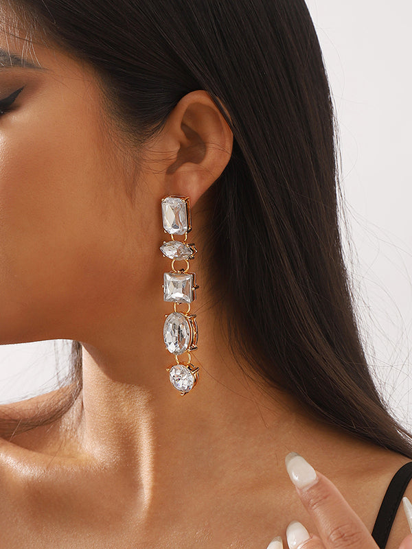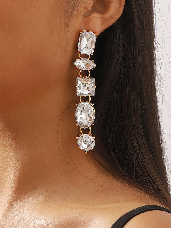 Geometric Rhine Stones Drop Earrings