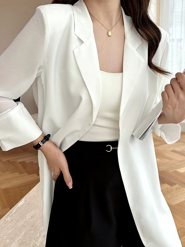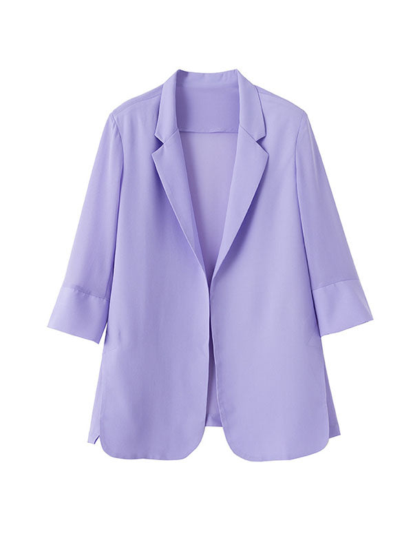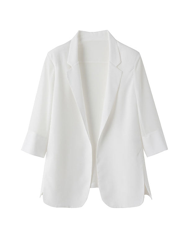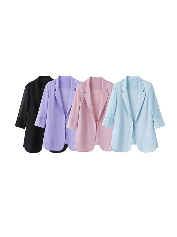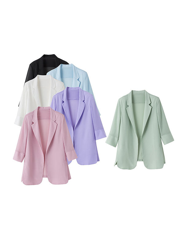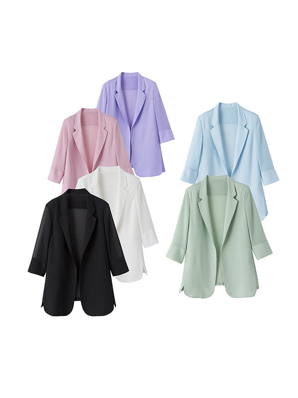 Long Sleeves Loose Solid Color Split-Side Sun Protection Notched Collar Blazer Outerwear