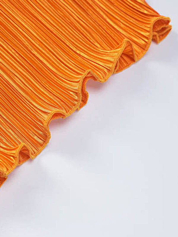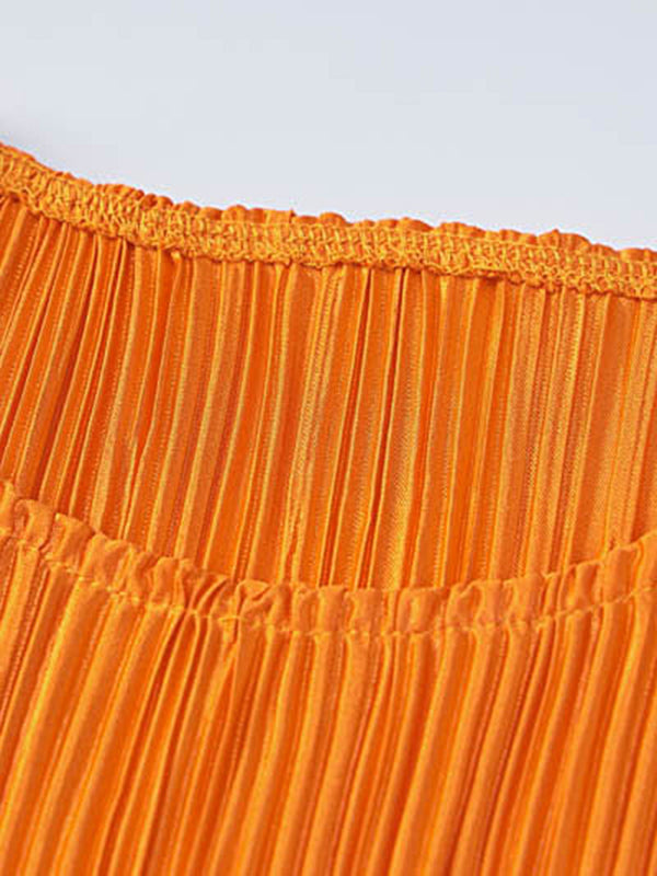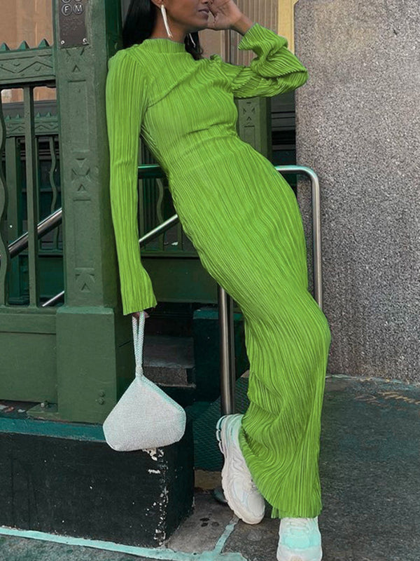 Long Sleeves Skinny Pleated Solid Color Split-Joint Round-Neck Maxi Dresses