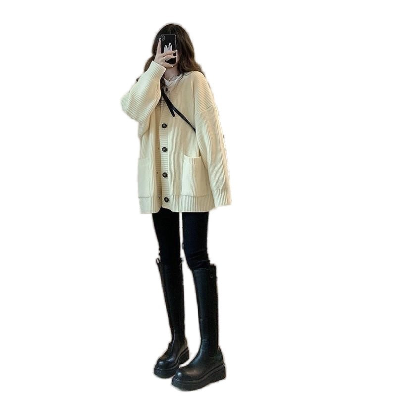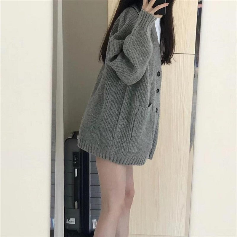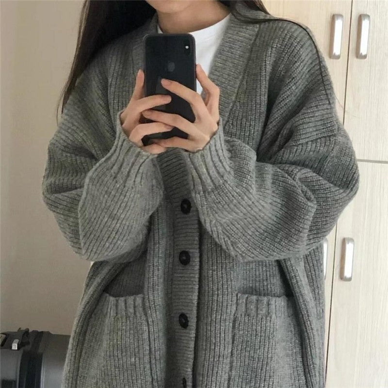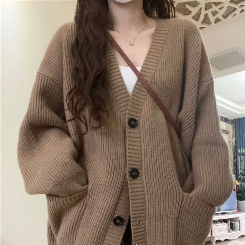 Loose Fit Solid Color V-Neck Cardigan Sweater