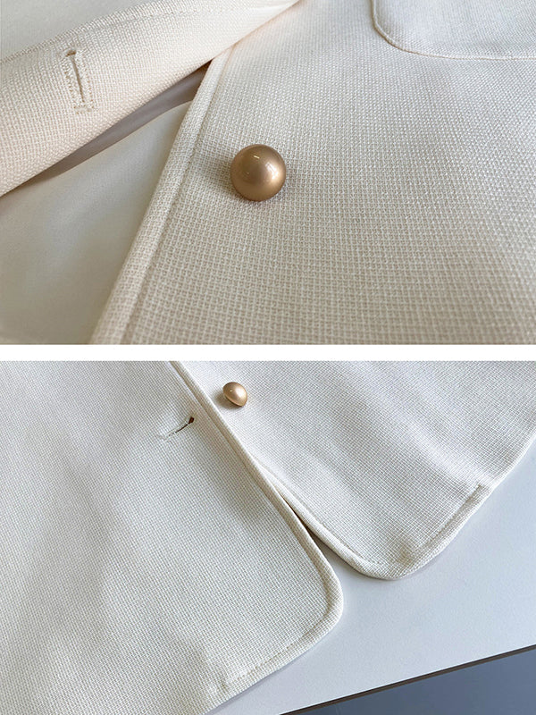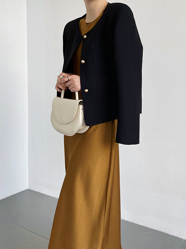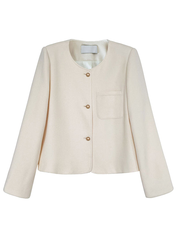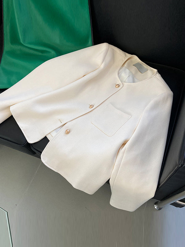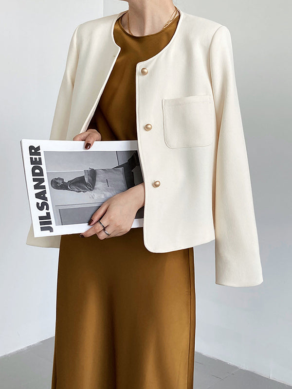 Original Creation Long Sleeves Loose Buttoned Solid Color Round-Neck Outerwear