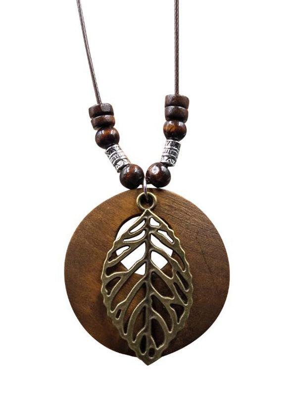 Original Vintage Wood Alloy Leaf Necklace