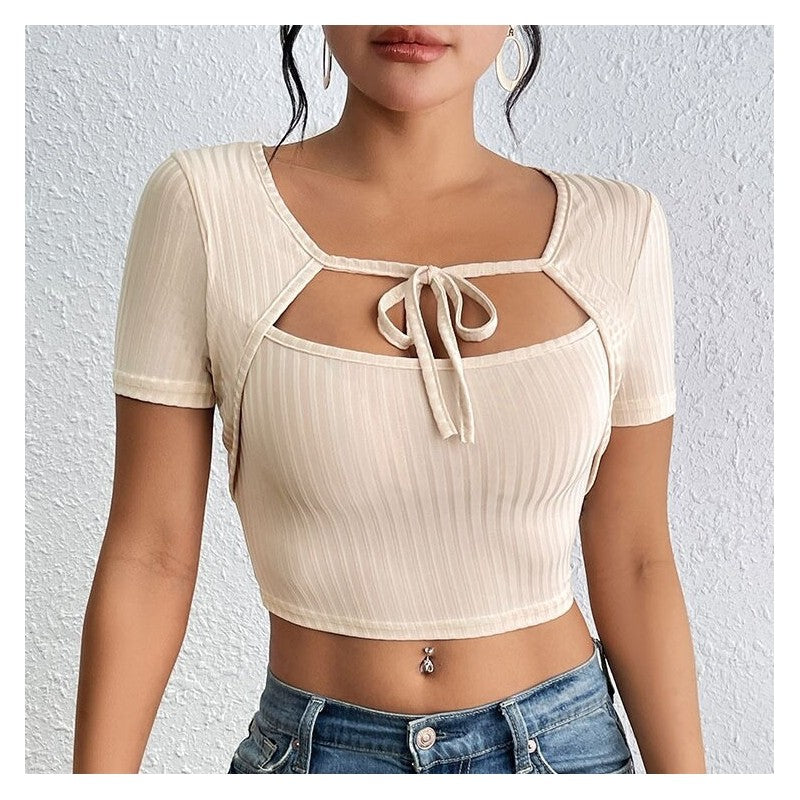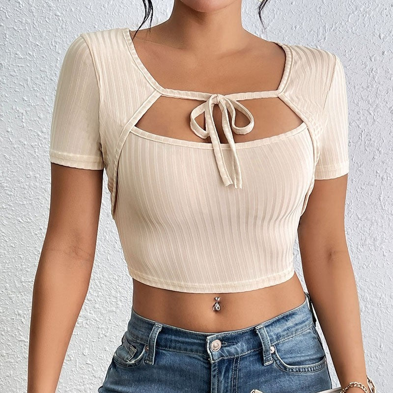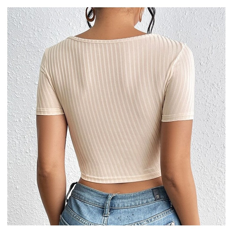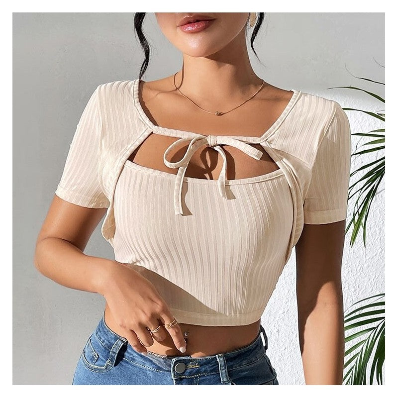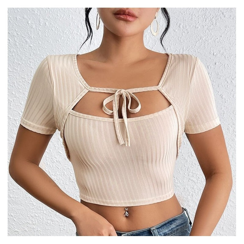 Ribbed Knit Tank Top Set with Square Neck and Belt
