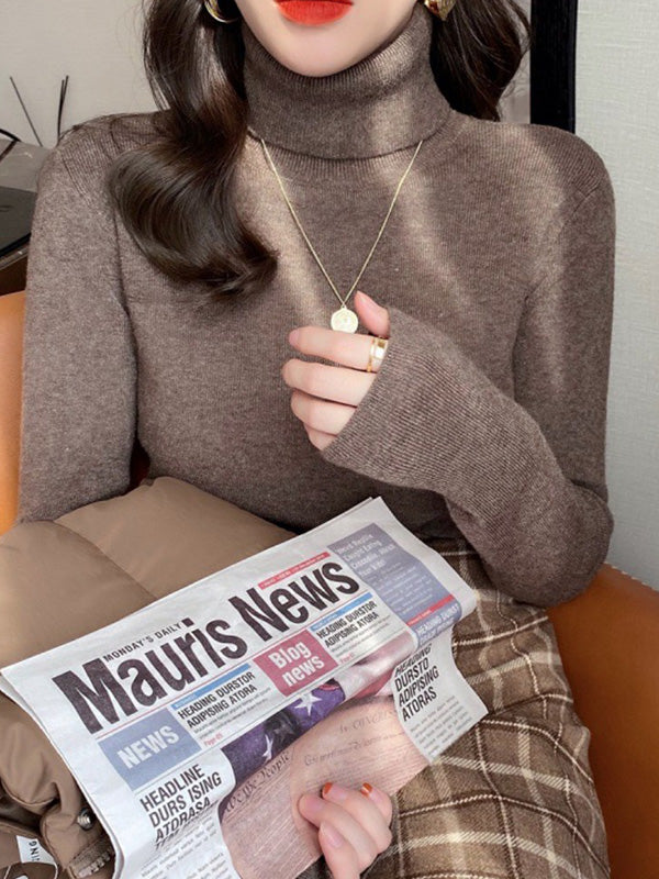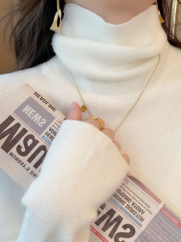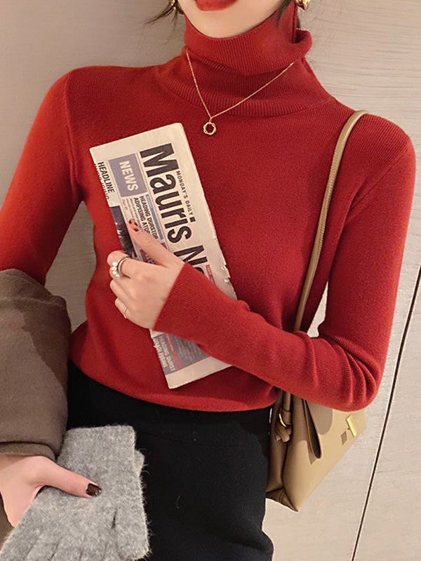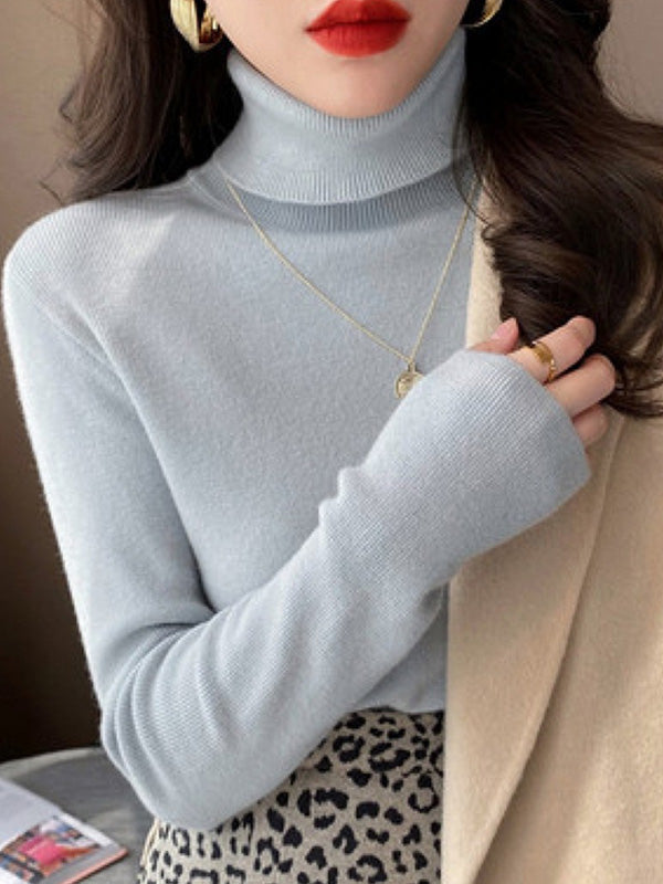 Simple Skinny Long Sleeves Solid Color High-Neck Pullovers