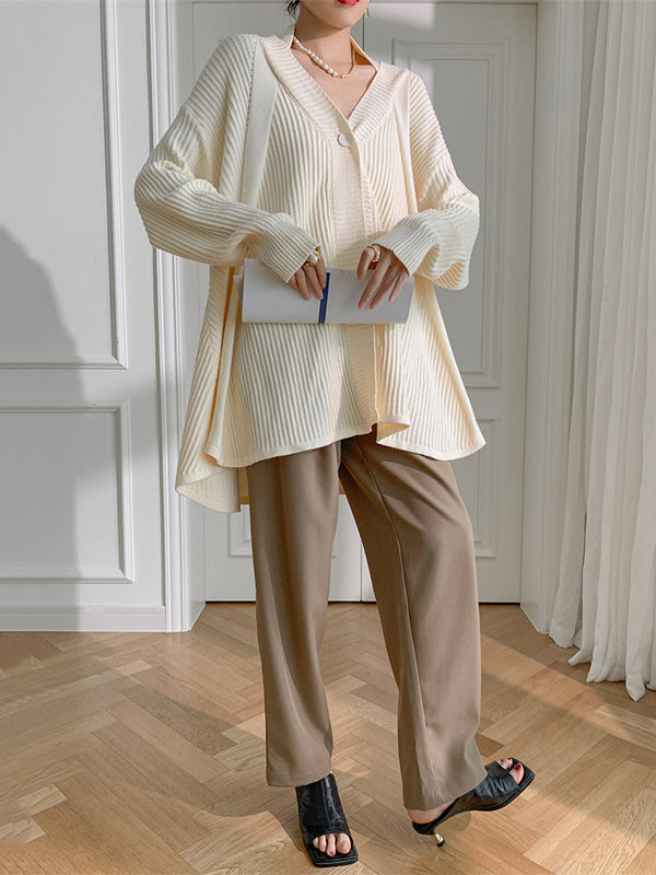 Stylish A-Line Long Sleeves Loose Solid Color V-Neck Cardigan Tops
