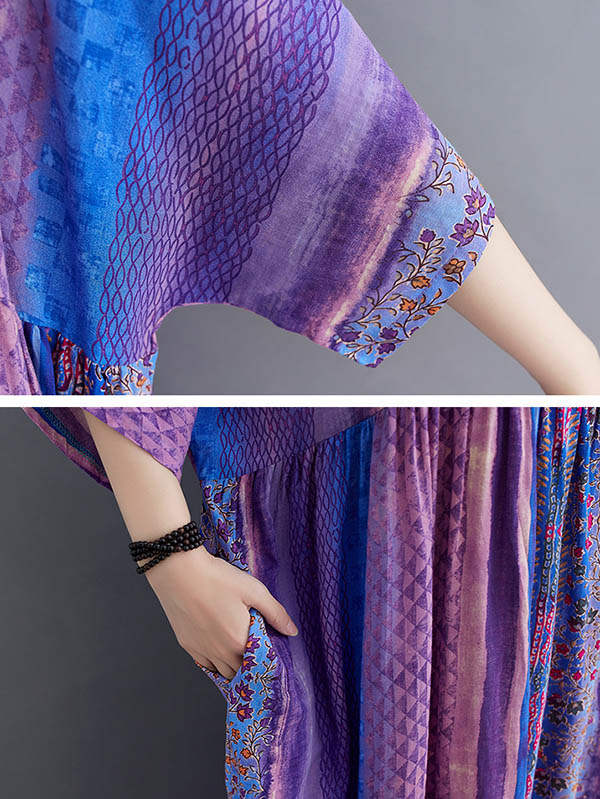 Vintage Side Pocket Striped Floral Printed Midi Dress