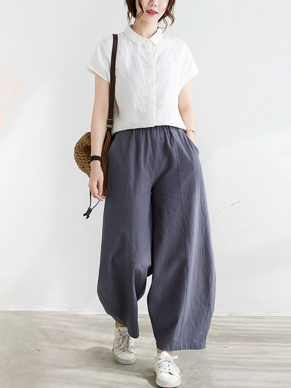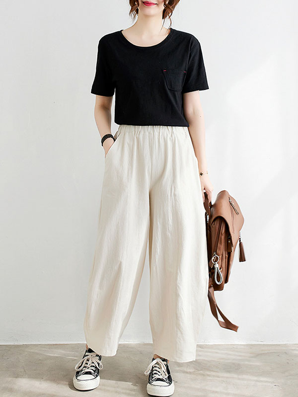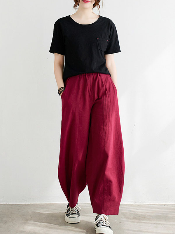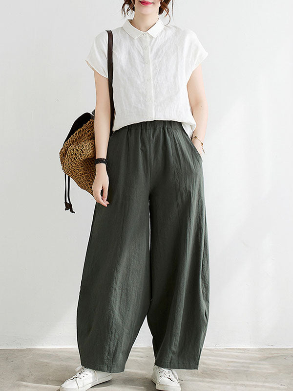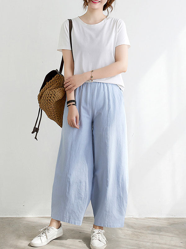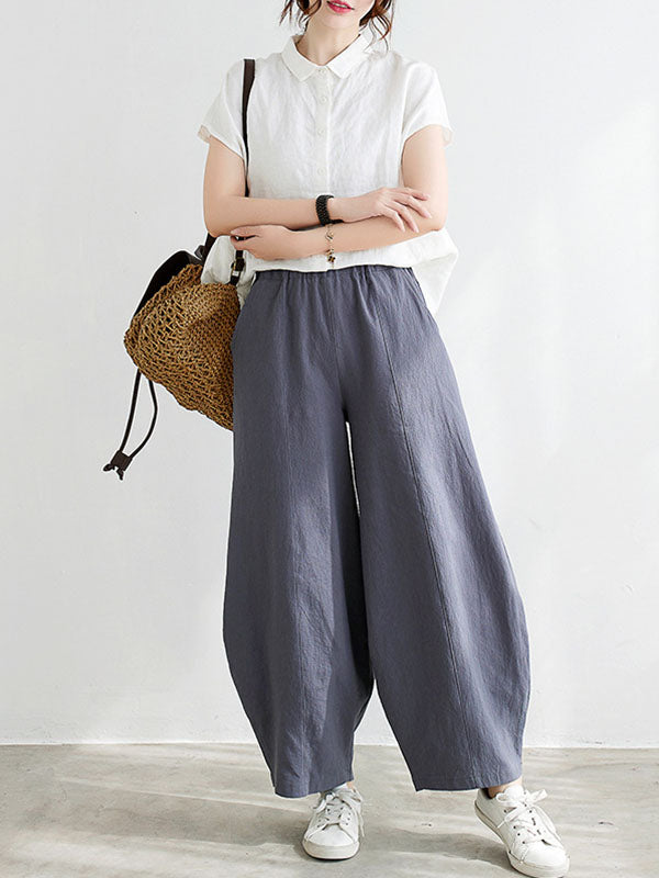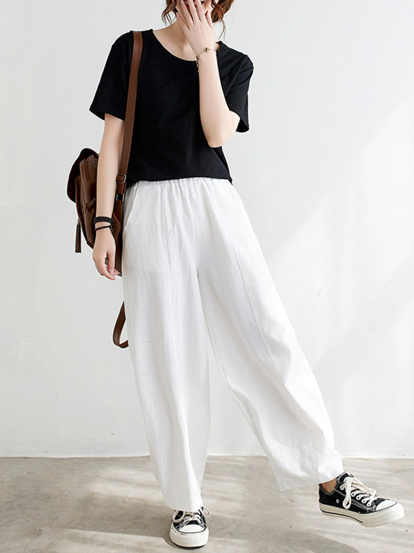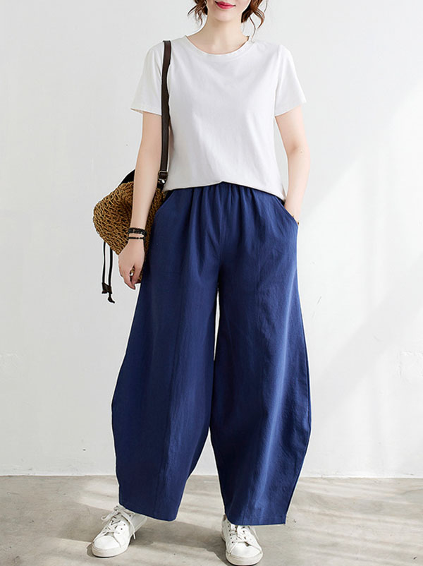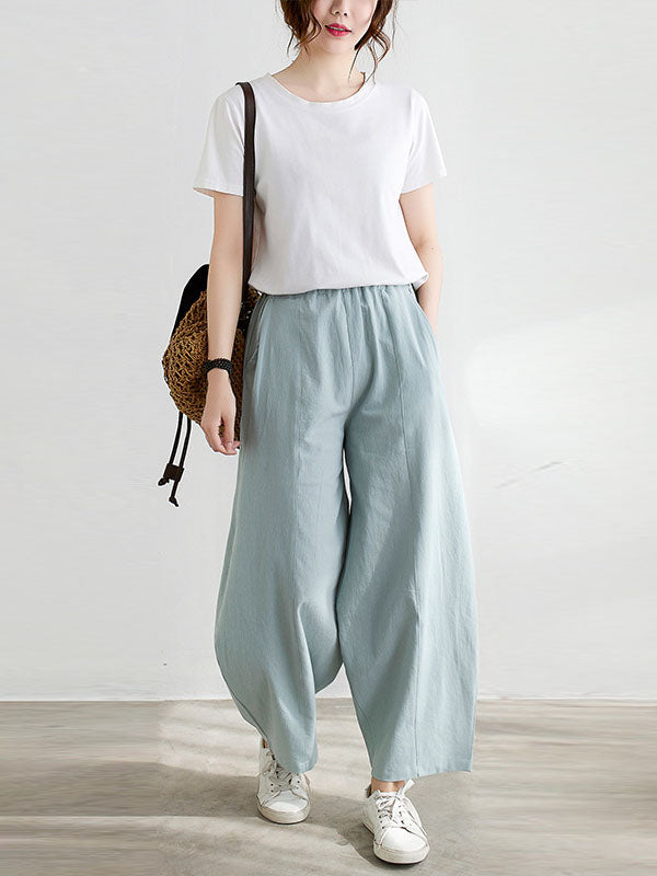 Wide Leg Loose Elasticity Solid Color Casual Pants Bottoms